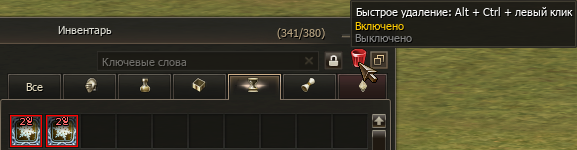 Добавлена возможность быстого удаления предметов из инвентаря (Внимание! Удаление предметов осуществляется без окна подтверждения) ![]() |