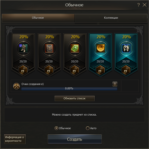 Теперь наращивать Боевую Мощь персонажа с помощью коллекций еще проще. Для игроков доступно случайное создание предметов, которые при применении заполняют указанную на них коллекцию.